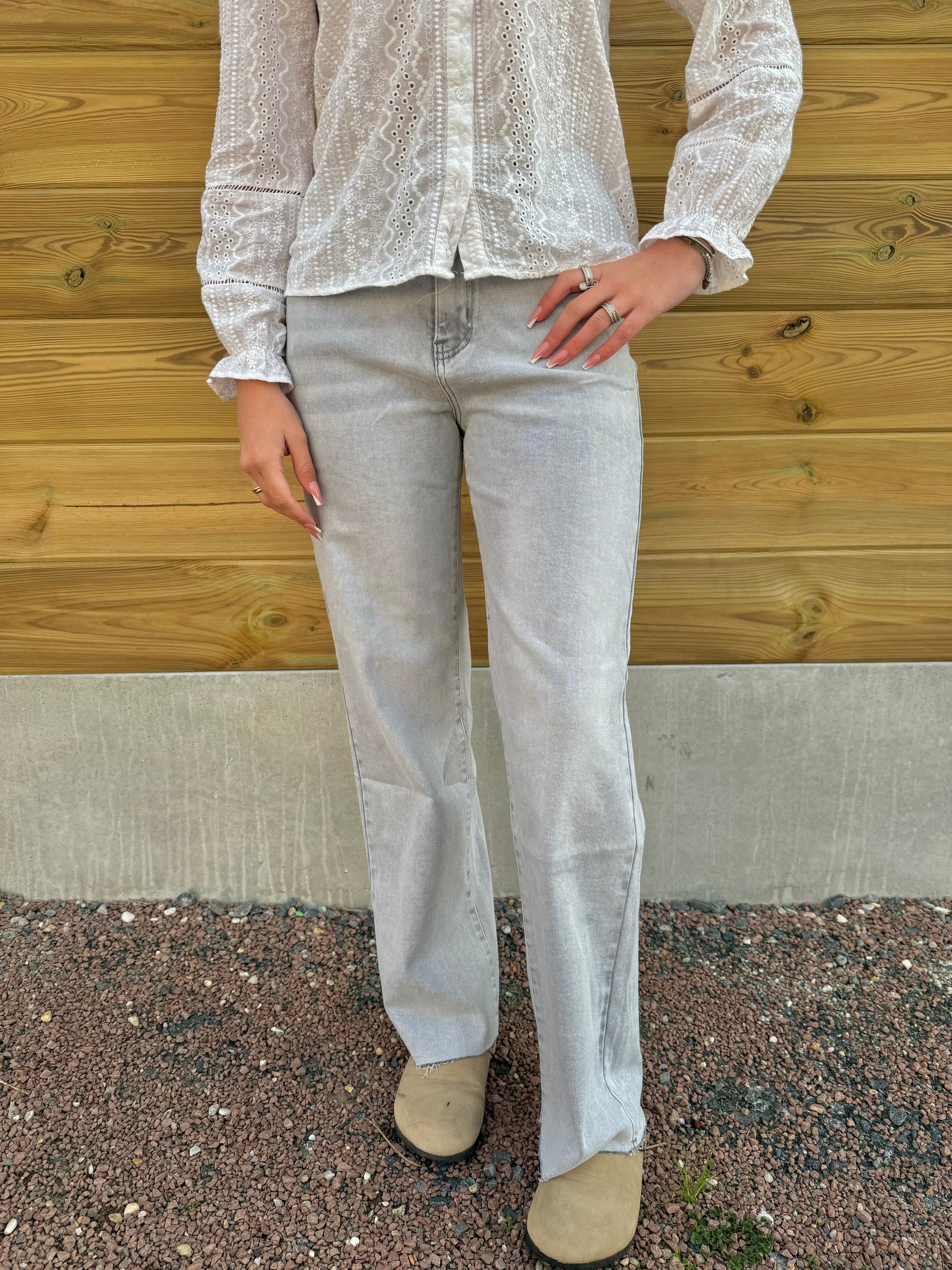 - Le Jean Maddy offre un style décontracté et amusant avec sa coupe large et sa couleur bleu clair.